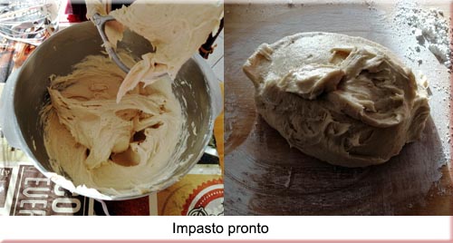 3.Versare il composto su una spianatoia spolverata di amido di mais , formare una palla e mettere a lievitare fino al raddoppio dell’impasto coperto di pellicola.