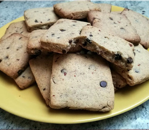2.Unire anche le farine, il lievito e lo xantano. Quando l’impasto si sarà formato, aggiungere le mandorle grossolanamente tritate e le gocce di cioccolato.