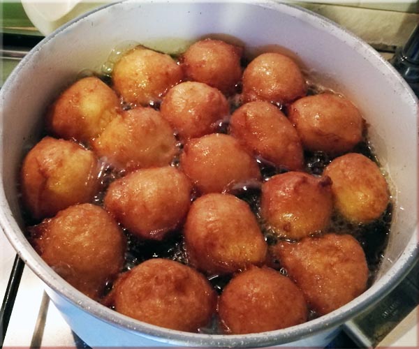 Girate spesso le frittelle, che cuoceranno in circa 6 minuti.La temperatura di frittura è importante che sia mantenuta costante, altrimenti se sarà troppo bassa le frittelle si impregneranno di olio, se risulterà troppo alta , bruceranno non cuocendo bene all’interno. E’ difficoltoso mantenere la temperatura corretta con l’utilizzo di un fornello, anche se utilizzate un termometro per fritture, pertanto sarebbe bene utilizzare una friggitrice.