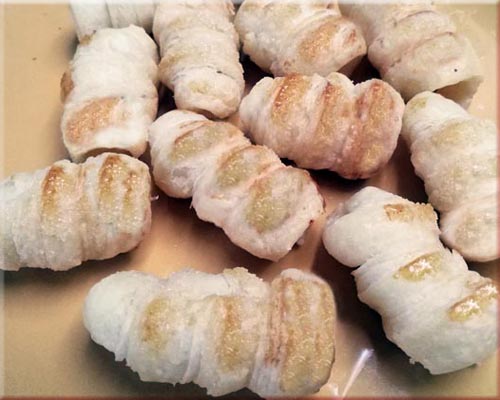 Effettuare le pieghe stendendo la pasta con il mattarello non darà lo stesso risultato preciso che si otterrebbe con una sfogliatrice, tuttavia se si rispettano i tempi di riposo e non si riscalda troppo l’impasto durante la lavorazione prima della cottura, si avrà comunque una sfoglia croccante e ben strutturata.