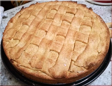 4.Con la pasta fare delle strisce da alternare sulla superficie della torta in modo da coprirla completamente.